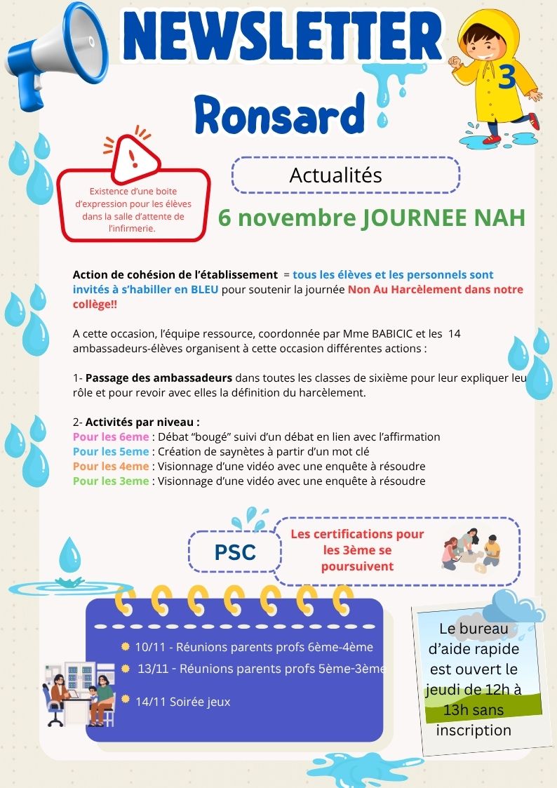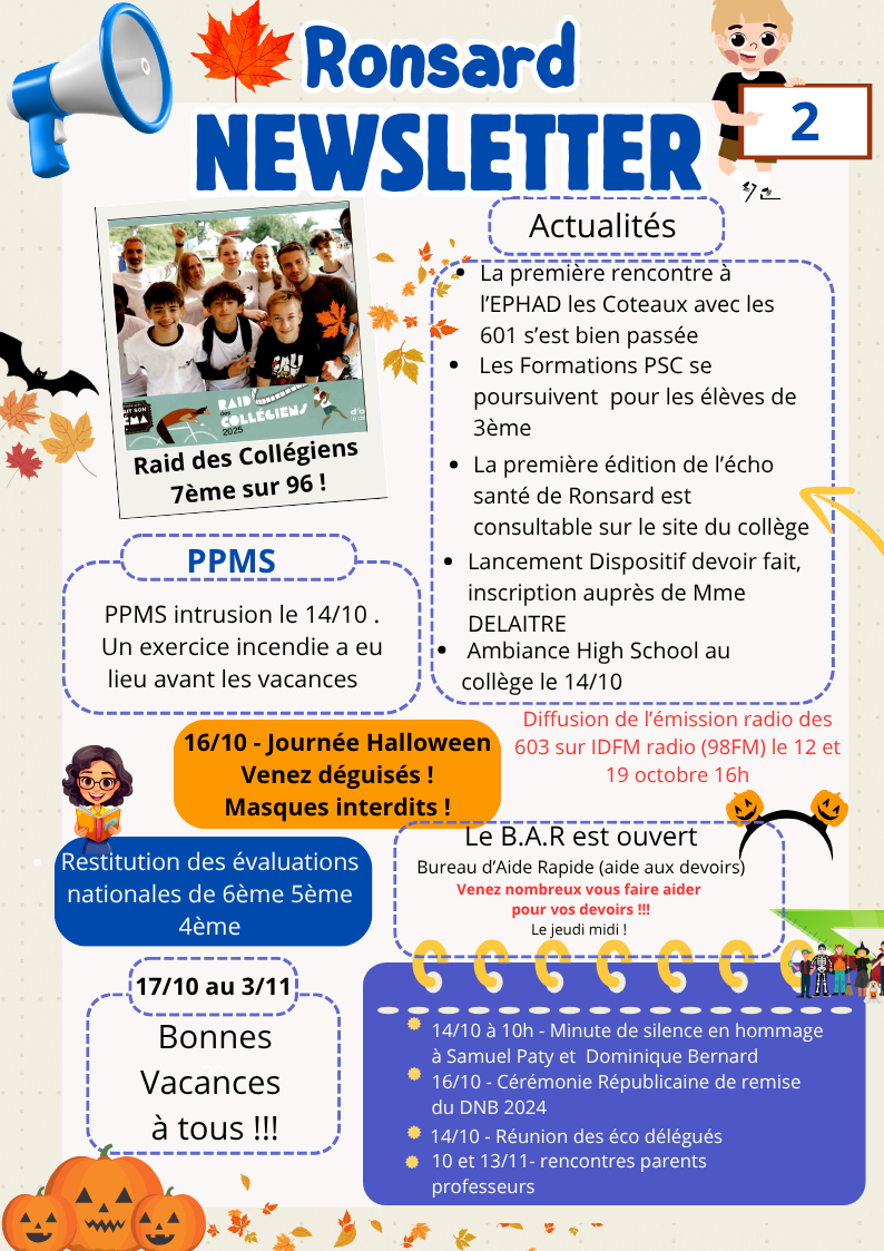 Les actualités du collège Pierre de Ronsard entre le 1er et le 15 octobre 2025